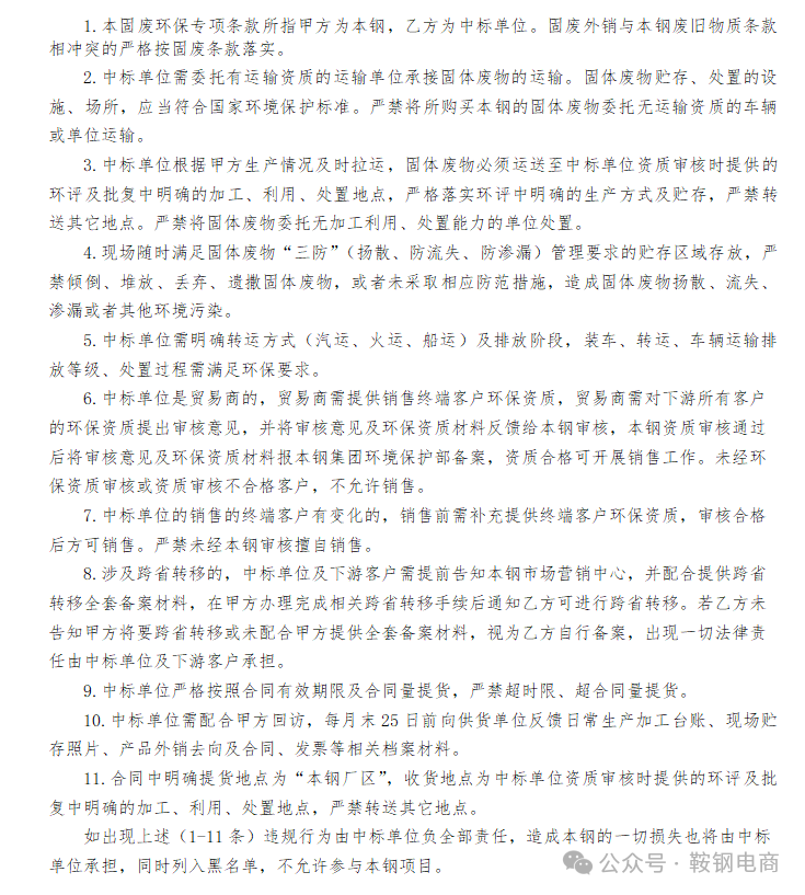 本钢板材股份有限公司定于2024年5月10日在德邻循环平台(网址:http://xh.dllg56.com)上进行粉煤灰竞价销售,现将具体事项公告如下:注:1、本次竞拍数量为2024年6月1日-2025年5月31日预估量,以合同期内实际产出数量为准,对粉煤灰质量、数量不做保证。2、买方接货地点必须在距离本钢装货地点20公里以内,合同执行及运送过程必须符合本钢集团环保部固废管理要求,否则合同作废。本批物资全部采用自由报价模式,不设置延时。竞价客户只能查看自己出价信息,不能看到其他人出价信息及价格是否领先情况。竞价过程中可多次修改报价,竞价结束前的最后一次报价为有效报价。中标原则为“价高者得,时间优先”。①参与竞价客户需认真执行国家、地方级行业的相关法律法规,且与鞍钢、本钢集团各单位无法律纠纷。②本次竞价面向鞍钢电商平台注册的客户,新客户可通过电商平台自行注册,原平台注册客户可使用原用户名进行新平台的登录(特别提示:新平台首次登录需凭借原注册的手机号进行验证修改密码后,方可进行登录)。不明事项请联系平台客服,客服电话:400-9855-888。③拟参与客户在德邻循环网站销售预告《本钢板材股份有限公司粉煤灰竞价销售市场公告》中点击“参加竞价”。2、保证金:为保证竞价秩序及合同正常执行,参与竞价客户需在竞价前向电商平台缴纳竞拍履约保证金,否则不允许参加竞价。本次保证金需在5月10日9:30前交至指定账户。竞价未成功客户的保证金自动释放,在7个工作日内给予退款;竞价成功客户按照成交总金额的0.5%服务费率缴纳交易服务费用,交易服务费用从保证金中扣除;若保证金不足,客户需补交服务费差额。3、竞拍底价:竞拍底价为现款含税出厂价格(含13%增值税)。1、本场次竞拍标的属于固废,因此采用定向竞拍的方式。用户须具有相关环保资质且通过本钢板材股份有限公司环保部门审核,方能参与竞拍。2、买方应对标的物实际情况进行充分了解,并对其竞买行为承担法律责任。一旦在竞价过程中出价,则默认买方已现场查看对应标的物并认同其品质,中标后一律不处理质量异议。3、表中所涉型号名称、型号规格、材质成份、数量以现场看货为准,有意者必须到现场看货。4、表中数量为估算量,结算量以卖方实际检斤计量为准。5、买方须在竞价成交日后的三个工作日内签订合同,并付清全部货款,逾期视为违约,扣除对应场次的保证金。6、中标用户竞价期限内价格均按中标价格执行,中标方与本钢非钢销售部签订现款销售合同;若为银行承兑汇票,按本钢当期政策执行。8、接货约定:按销售合同具体约定时间执行或按生产厂要求接货。9、货款交付方式:买方可通过企业网银、电汇、现金支付到卖方指定账户。10、买方必须按照自身合法营业范围内参与竞价,否则中标结果无效,扣除对应场次的保证金。11、买方接货时应按照卖方要求保证安全、并遵守卖方的各项规章制度。12、保证金不冲抵货款,买方须持营业执照复印件、法人委托书(法人除外)、经办人身份证原件及复印件办理签订合同,否则不予受理。(1)中标方须按月连续、均衡地按照本钢下达的书面计划接货。接货时,需遵守本钢集团相关规定,不得影响本钢发电厂生产运行,冬季应根据本钢生产需要,进行24小时接货,如因接货原因影响甲方生产顺行,发生一次,扣除保证金50%,发生第二次,扣除全部保证金。(2)中标方在履约期内执行运输计划时,要求有应急预案,在遇到特殊天气、国家重大活动,或道路运输、环保政策变化时,不得影响本钢相关单位正常生产工作,否则,相关损失由中标方承担,并按上述条款进行考核。(3)若遇本钢集团内部自用该产品,本公告约定的内容自动终止。(4)本钢按约定向中标方供货,如遇本钢经营政策调整、设备检维修、增产、减停产和其它不确定因素,导致计划资源量发生变化时,订货计划量可以根据实际情况增减。14、签订合同联系人:赵洪宇 024-4222437316、电商平台联系人:陈嘉颖 电话:0412-6726922;