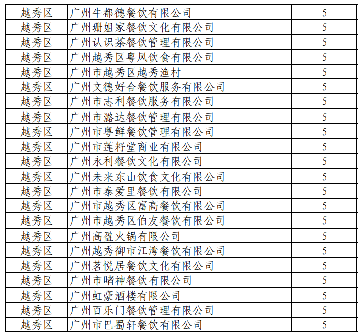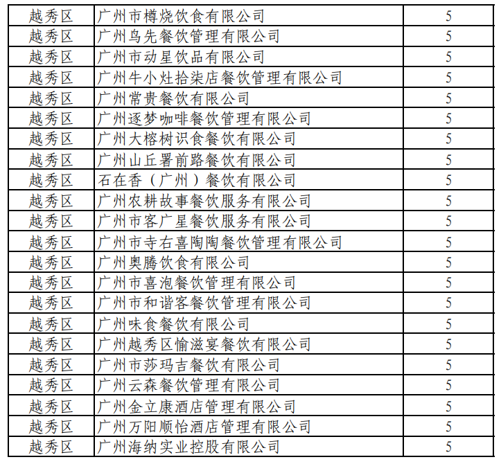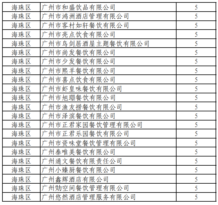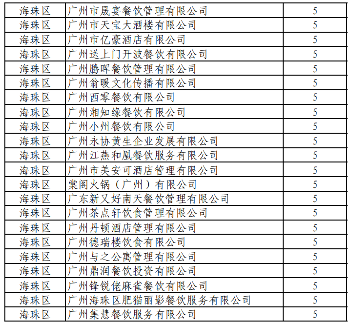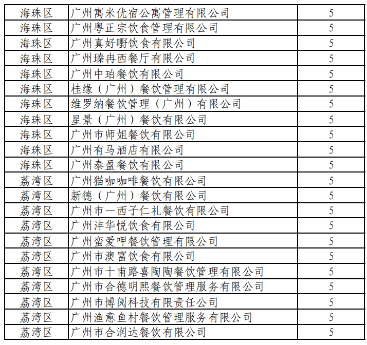 ▪ 奖励企业名单:广州旨魂星寰餐饮发展有限公司等741家