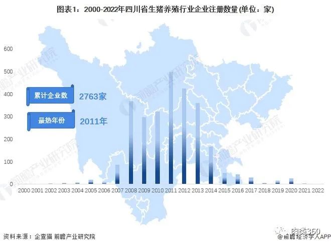 根据中国企业数据库企查猫,目前四川省生猪养殖行业的主要企业共有2763家,其中以2011年为主要注册热潮,2011年四川省生猪养殖注册企业数量达500家;2021年四川省生猪养殖行业新增注册企业数量共有5家,同比减少21家。
