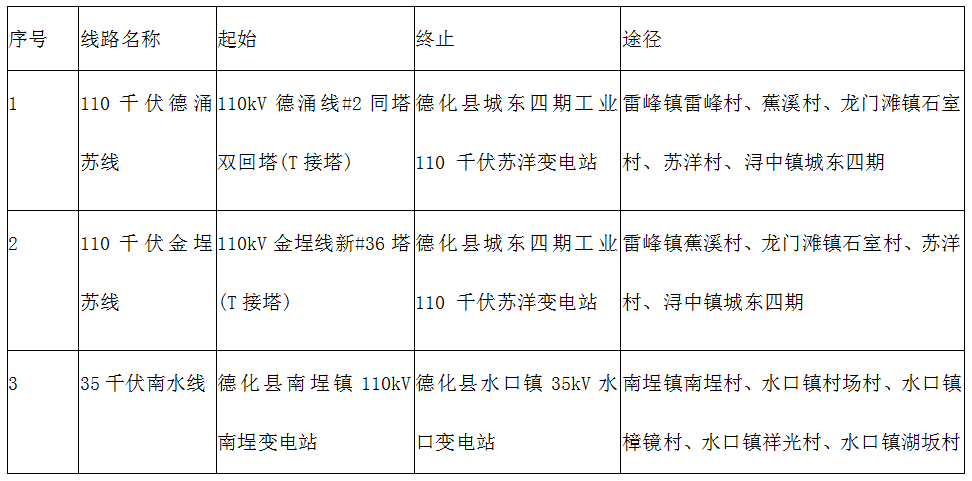 国网德化县供电公司110千伏德涌苏线等3条输电线路电力设施保护区公告