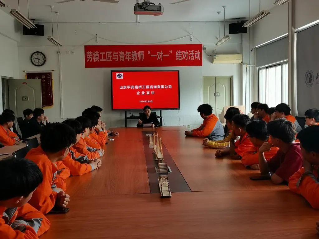 5月6日,公路与建筑系召开建设工程监理专业现代学徒制“技能工匠班”推进校企合作洽谈会,山东平安路桥工程咨询有限公司董事长李旭亮、副总经理张志光、人力资源部主任李梅、公路与建筑系负责人荣文涛、专班成员尹斌、建设工程监理专业负责人张晓燕及本专业教师参加了本次会议。