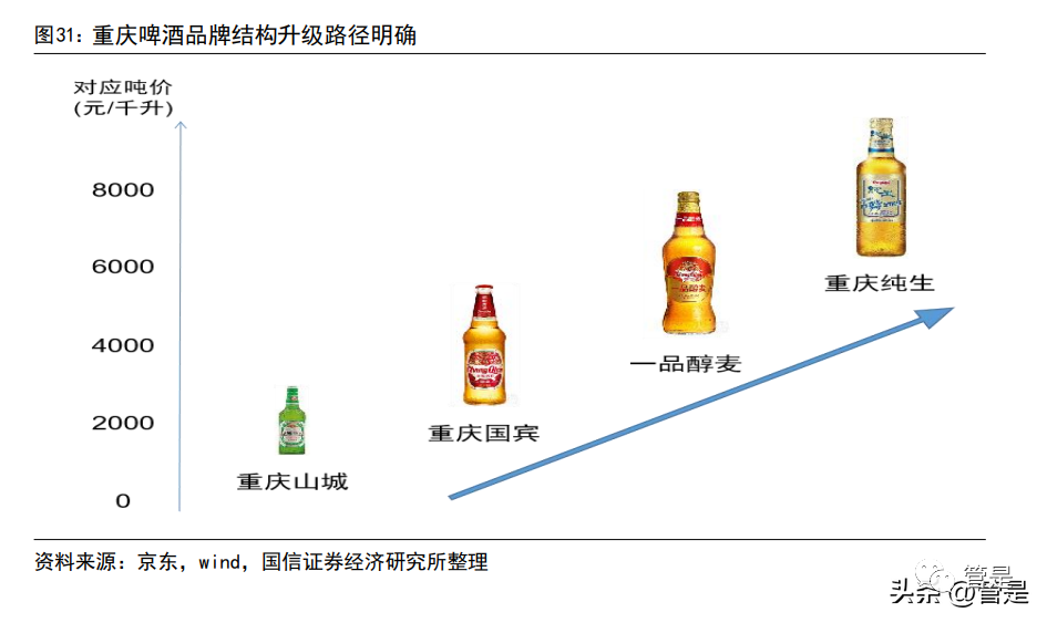 重庆啤酒品牌经过超 60 年的发展与品牌培育,在重庆地区已形成绝对的品牌与渠道的优势,在推动产品结构升级时,面对渠道及消费者拥有更强的话语权。另外,重庆经济发展迅速,消费者消费能力高,且在吃喝玩乐上花钱的意愿较强,因此重庆啤酒品牌的高端化得以顺利推进。公司的重庆啤酒品牌由于在重庆地区已经实现极高的市占率,反而开始刻意减少乌苏、乐堡等外来品牌在重庆地区的投放,以减少其他品牌对其重庆品牌曝光度的稀释,牢牢占据消费者心智,从而更好维护品牌力的护城河,抵御其他如雪花、青岛品牌的进入;同时有意识地在渠道发货、终端铺设、品牌宣传等环节引导渠道及终端消费者,由中低端产品向中高端产品进行升级。