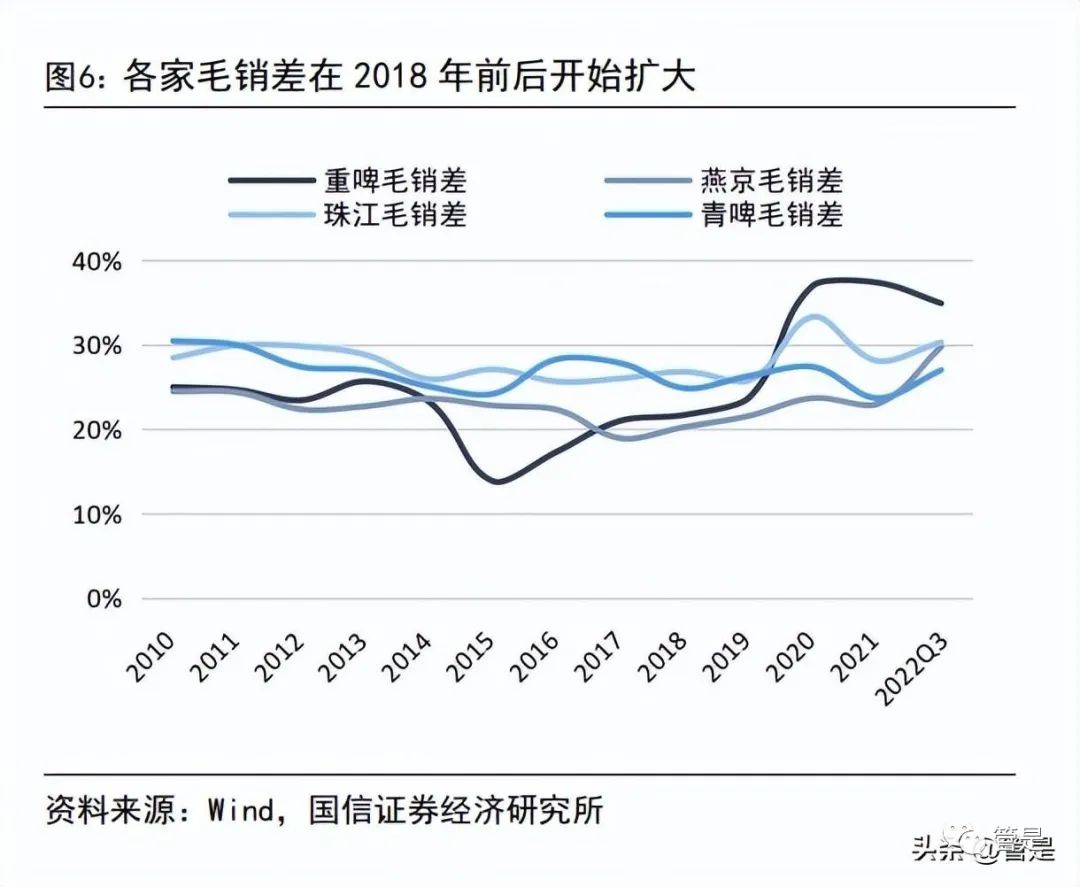 提价:直接提价亦是高端化的主要手段,尤其是在成本压力较大时。2018年前后面对成本上涨压力,啤酒行业性提价预期逐步升温。以华润啤酒为首的龙头在 18 年年初宣布为应对生产成本增加带来的压力,对旗下产品进行提价;同时在经营策略上缩减销售费用投放,将考核导向从收入/销量部分转为利润。高端化被进一步明确为未来战略发展方向,节奏开始提速。2021年,同样为应对成本压力,啤酒行业迎来新一轮涨价潮。截止2022 年,我们在终端观测到产品涨价已基本传导落地,销量与结构升级的节奏并没有受到影响,意味着啤酒行业的高端化进一步加速,也标示着人均饮用金额未来仍有提升空间。