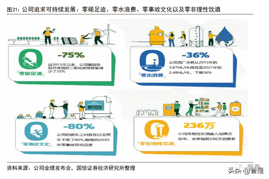啤酒的产品特点及品牌属性均将影响消费者对于该产品的认知,成为影响消费者购买决策的关键要素。一旦产品或者品牌形成受消费者认可的差异度,并通过与品牌特性相匹配的细分饮用场景落地,即可从同质化严重的品牌竞争中脱颖而出。公司针对矩阵中不同的产品,结合其特有的产品属性,打磨出不同的品牌特征,并且尝试与不同的消费场景进行绑定。乌苏的成功已从侧面印证了公司的品牌打造能力,后续公司亦将持续通过品牌与渠道的绑定来打造品牌差异化,从而提高品牌影响力。