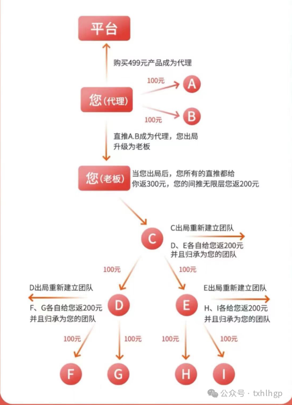 1. 直推奖:消费者购买499元大礼包成为代理后,推荐其他消费者购买499元大礼包,可获得100元奖励。