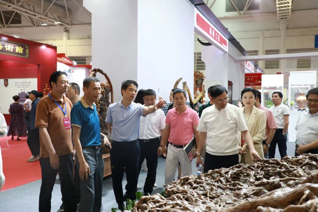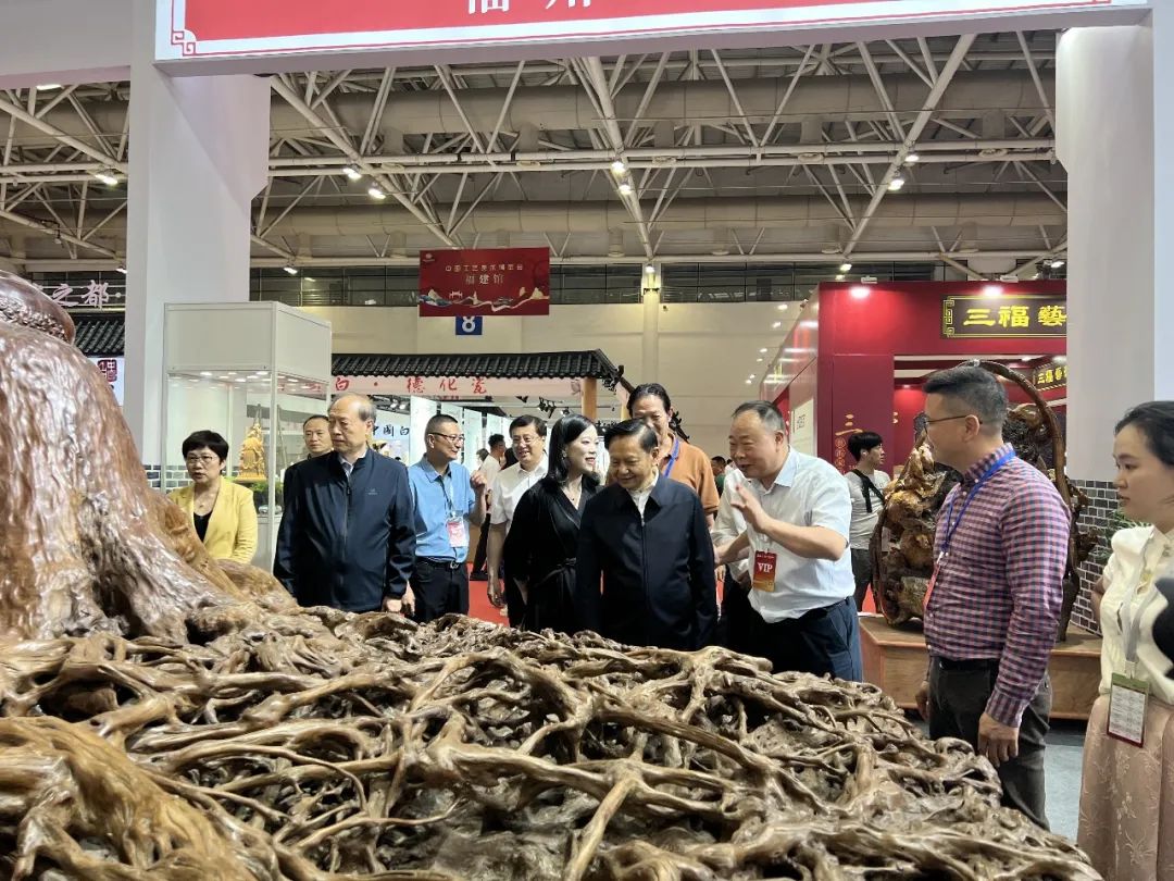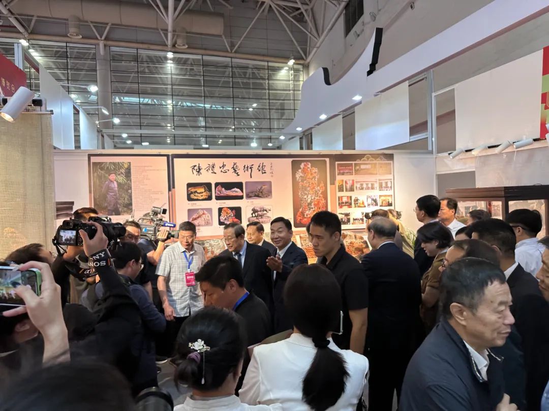 开幕式之后,福州市寿山石行业协会会长陈礼忠陪同第十三届全国政协副主席、中国科学技术协会主席万钢、福建省副省长林瑞良、中国轻工业联合会会长张崇和等领导参观展览。
