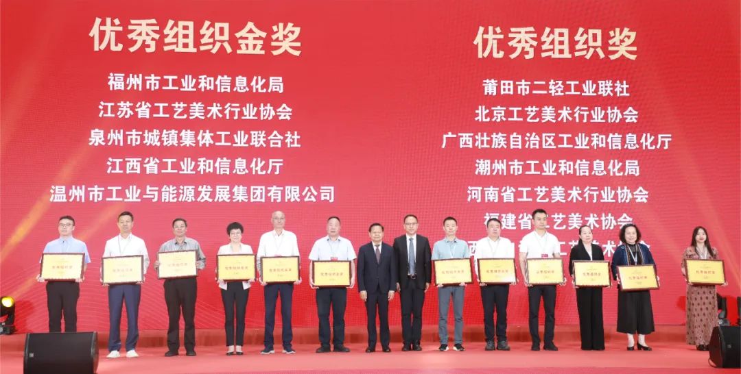 中国轻工业联合会授予福建省工艺美术行业发展促进中心、浙江省工艺美术行业协会“中国工艺美术博览会突出贡献奖”;授予福州市工业和信息化局等5家单位“中国工艺美术博览会优秀组织金奖”;授予莆田市二轻工业联社等7家单位“中国工艺美术博览会优秀组织奖”。