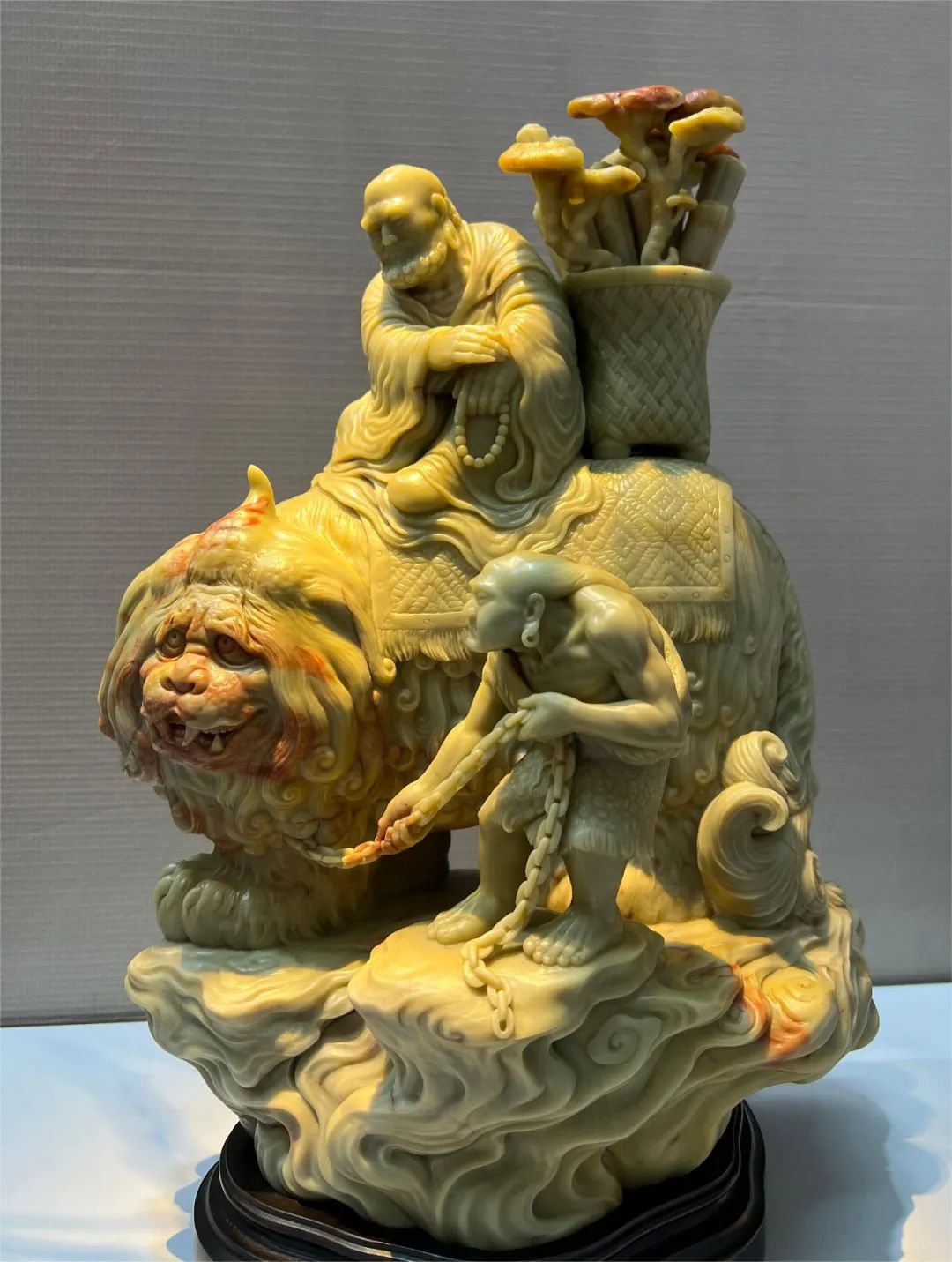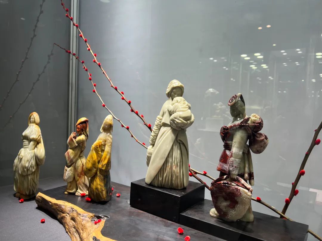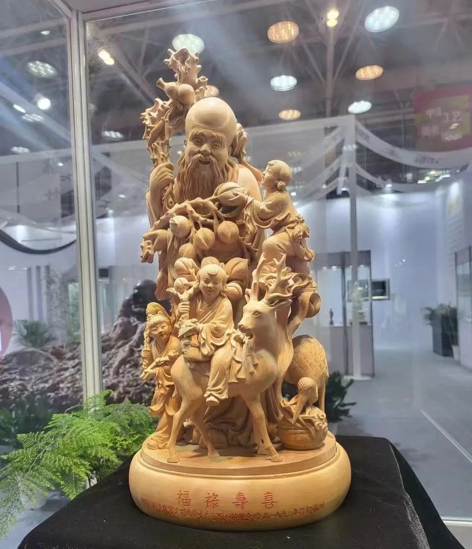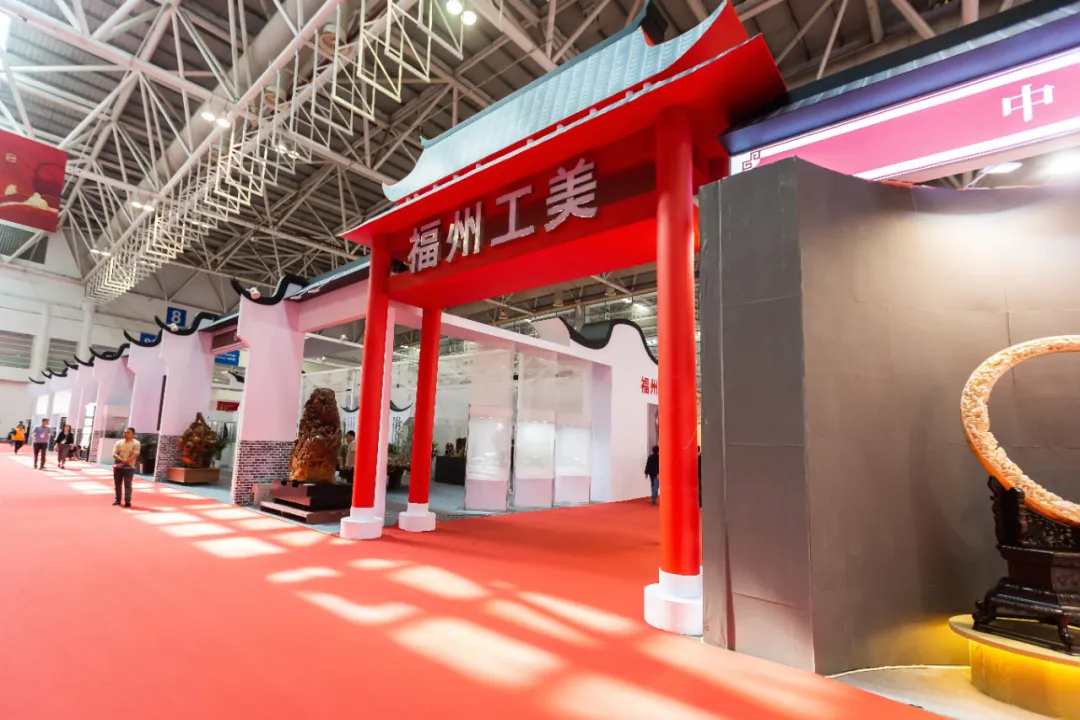 本次展览,福州展区气势磅礴,精美佳作让人流连忘返。福州是我国工艺美术重镇,工艺美术资源丰富、历史悠久、人才济济,工艺美术产业已成为福州文化的一张璀璨名片。作为本届博览会的东道主,福州工美展团早在数月前就已紧锣密鼓地展开筹备工作,从展位的设计搭建到展品的筛选陈列,每一个环节都力求精益求精,以呈现最完美的展示效果。本届中国工艺美术博览会福州展区由福州市工信局牵头组织,福州市寿山石行业协会、福州市脱胎漆器行业协会、福州市木雕行业协会积极响应福州市工信局的号召,负责筛选福州寿山石雕、脱胎漆器、木雕、牙雕、软木画等多个门类工美艺术精品参展,并积极参与协助展览展位预订、展馆布置筹划、现场布置调整等工作。展览现场