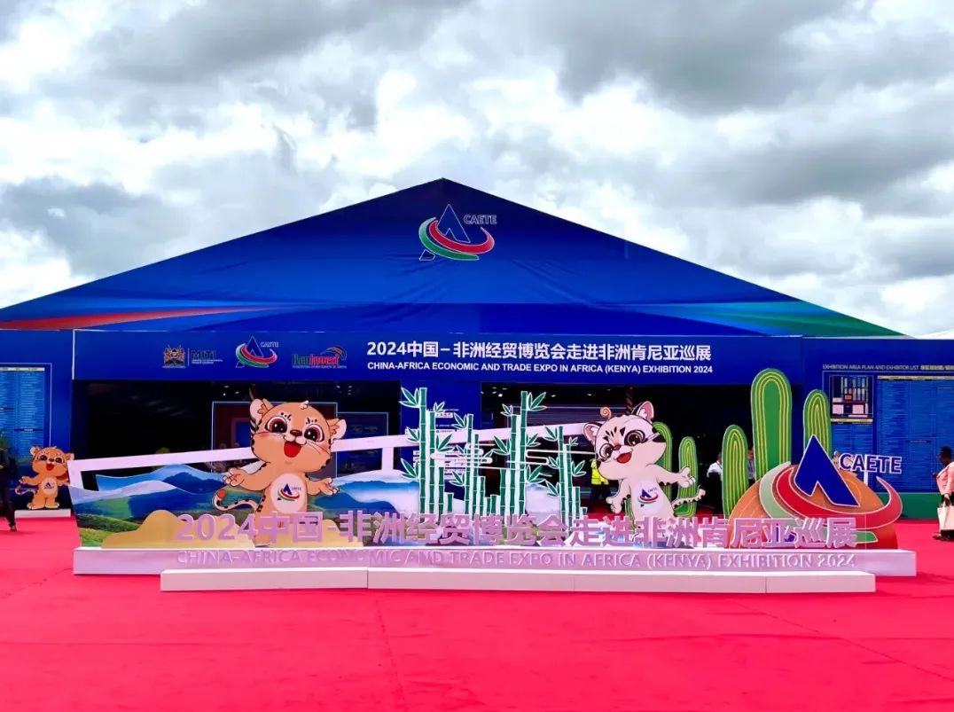 会场入口处,“2024中国-非洲经贸博览会走进非洲(肯尼亚专场)活动”的大字很是显眼,更引人注目的是旁边憨态可掬、活泼生动的吉祥物——“华宝和非宝”。现场打卡的人络绎不绝。