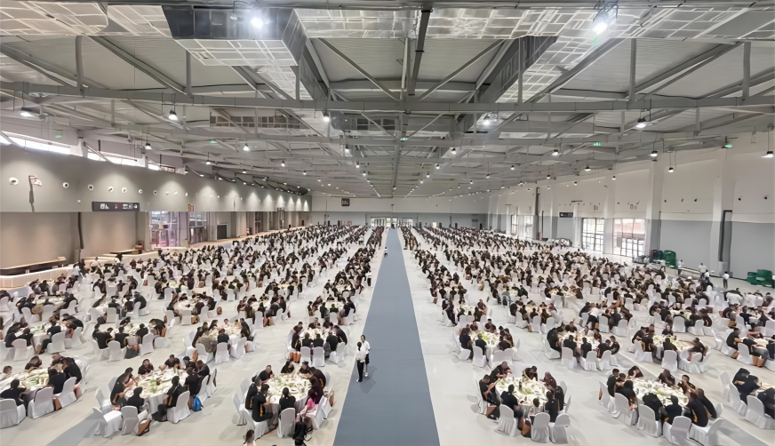 多措并举,助力消费内容新增长。一方面,西安团队围绕消费市场最新动态,打造迎合消费者的新场景和新产品,比如在梦乡漫展期间,团队借助现场巨大的人流量,主动开设自主品牌的咖啡厅,单日饮品销量破万元,同时还设立外摆销售口、搭建户外露营帐篷等,用衍生服务为观众提供多重消费场景。另一方面,西安团队积极围绕新的市场需求进行拓展,引入更多消费内容,如在去年的安能十三周年庆典暨2023年网络大会上,根据客户需求为其提供了极具陕西特色的宴会服务,开创了超大会议型宴会供餐新模式;再比如去年11月份针对陕汽重卡2024商务年会的需求,场馆采取定制化服务,将普通的展馆改造成为重卡展厅、分会场和宴会厅,为客户打造具有高度实用性的专属空间。
