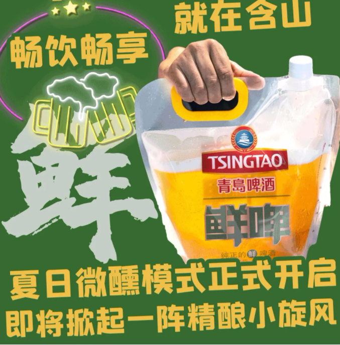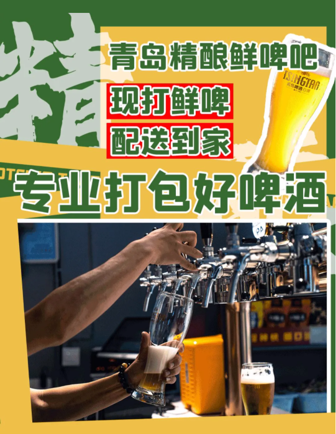 青岛精酿鲜啤吧推出全城鲜啤配送到家服务。纯正的鲜啤酒,分分钟打包送货上门,无论是朋友聚会还是家庭聚会,来一扎新鲜的青岛啤酒,氛围感顿时拉满!