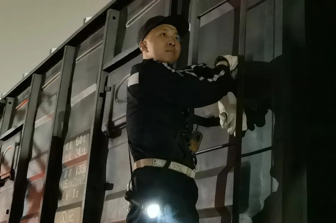 榆次站连结员抓稳蹬牢