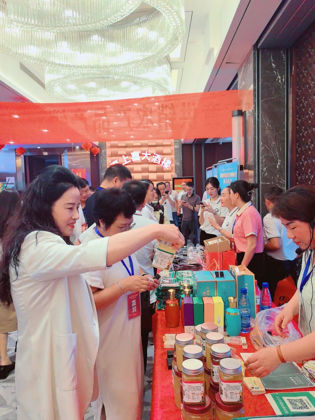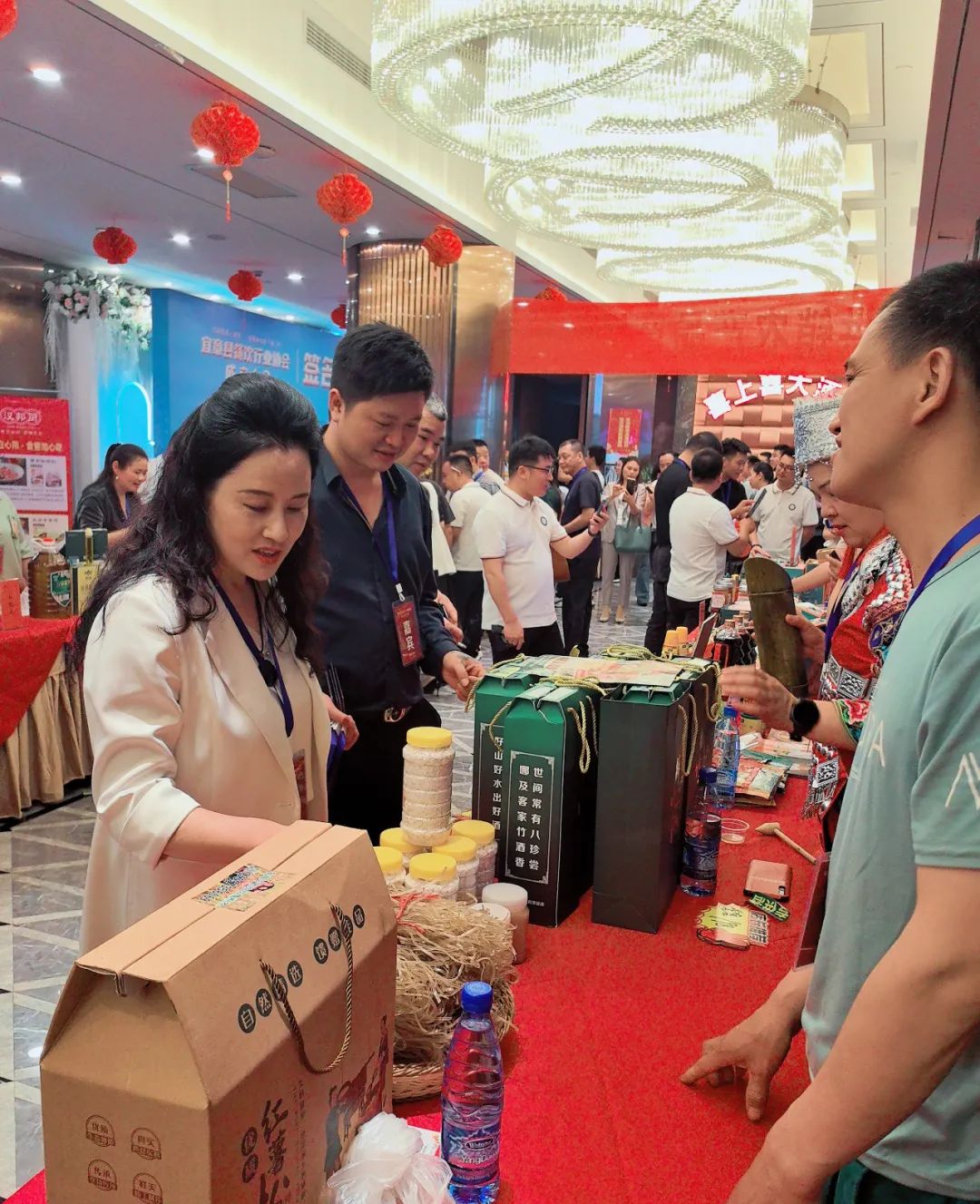 会长封雅林与参会人员一同参观了宜章特色农产品展示区,与参展的种植养殖专业合作社、农业龙头企业负责人了解了当地农产品发展经营情况等。本会理事郴州尚品湘绿色农业开发有限公司董事长朱华亮、宜章县绿健生态种养专业合作社董事长黄萍携公司特色农产品参展。