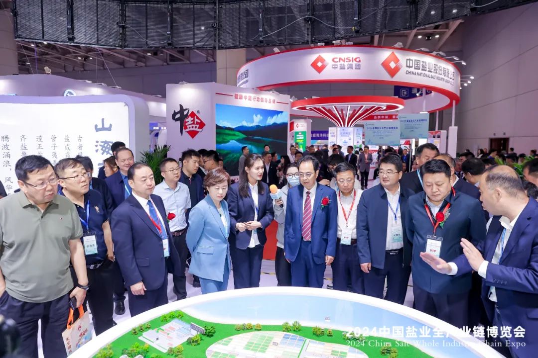 5月10日上午,2024中国盐业全产业链博览会在烟台国际博览中心隆重开幕,烟台市政协副主席曲荣君,工业和信息化部消费品工业司一级巡视员冯海沧,山东省工业和信息化厅党组成员、总工程师贺晓文,中国盐业协会党支部书记、执行理事长王小青在开幕式上致辞。市商务局局长由如林、市轻工集体企业联社主任刘来英及工信局、国资委、蓝天集团等相关部门(单位)负责人参加开幕式。