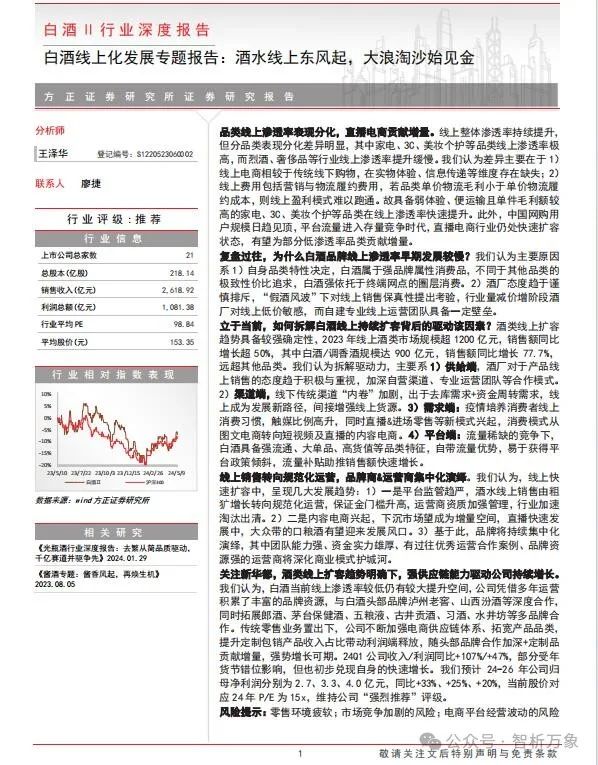 今天分享的是【白酒行业深度报告:白酒线上化发展专题报告,酒水线上东风起,大浪淘沙始见金.pdf 】 报告出品方: 方正证券