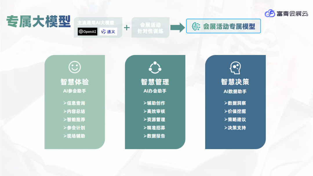 但同样的,在这期间,又催生了数字会展的发展,而随着这两年人工智能技术的发展,数据价值逐渐得到重视,会展AI大模型已经成为可能,这将更好地提高展会的商业价值和竞争力。