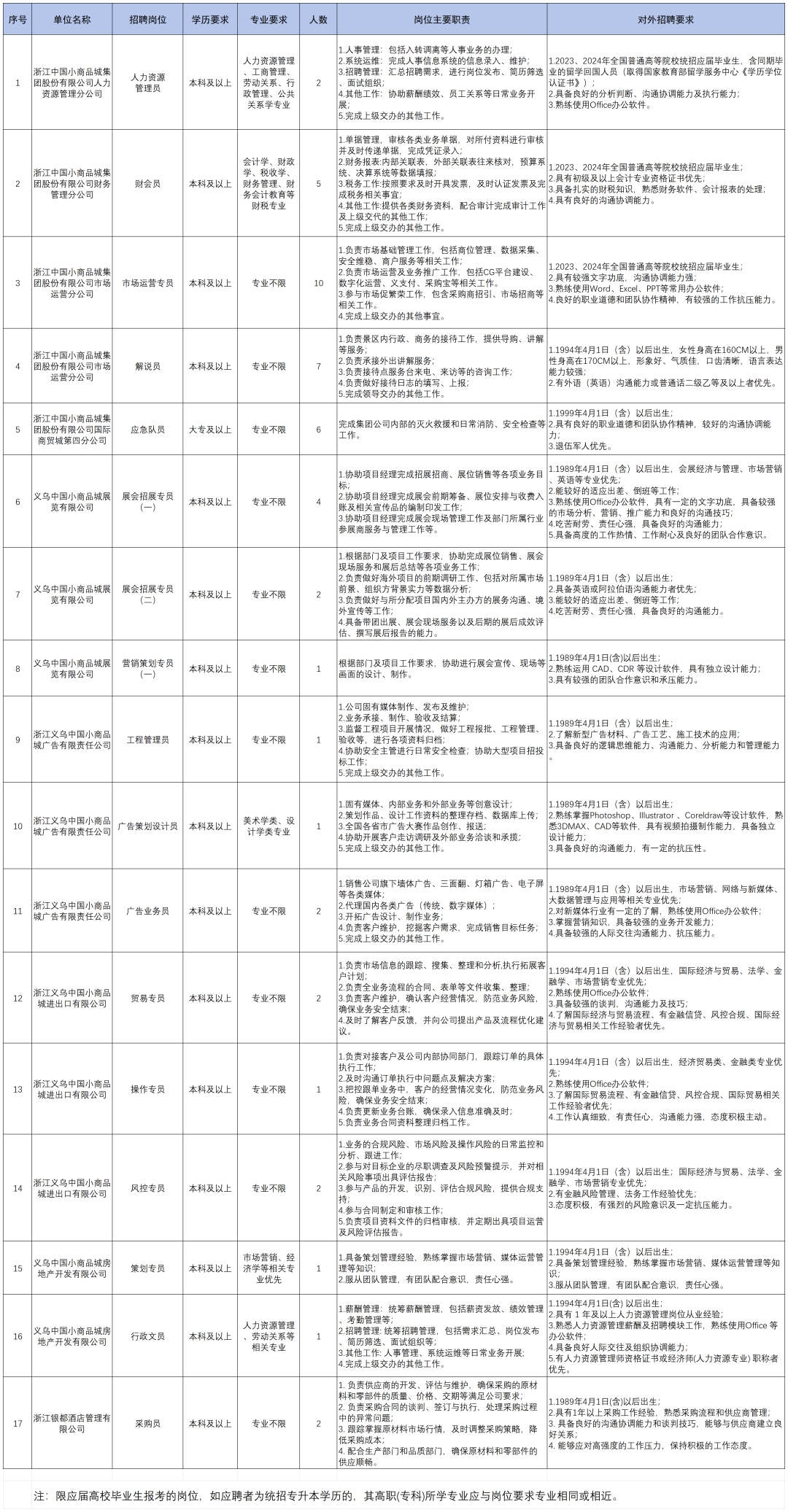 为加快引进优秀人才,商城集团现面向社会公开招聘部分岗位员工: