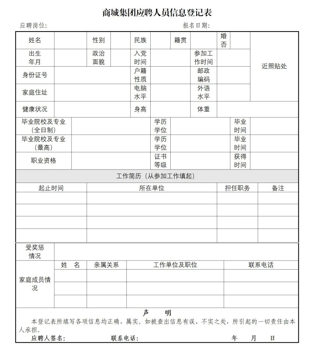 填写附件2:《商城集团应聘人员信息登记表》,并提供以下材料: