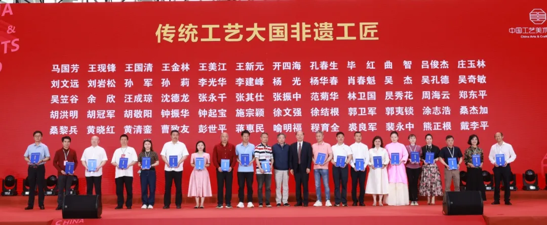 为推动工艺美术开启传承创新的新篇章,闭幕式上,为60名入选“首届传统工艺大国非遗工匠推荐学习活动”的非遗工匠们颁发证书。