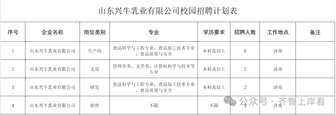 山东国企,山东兴牛乳业有限公司校园招聘公告
