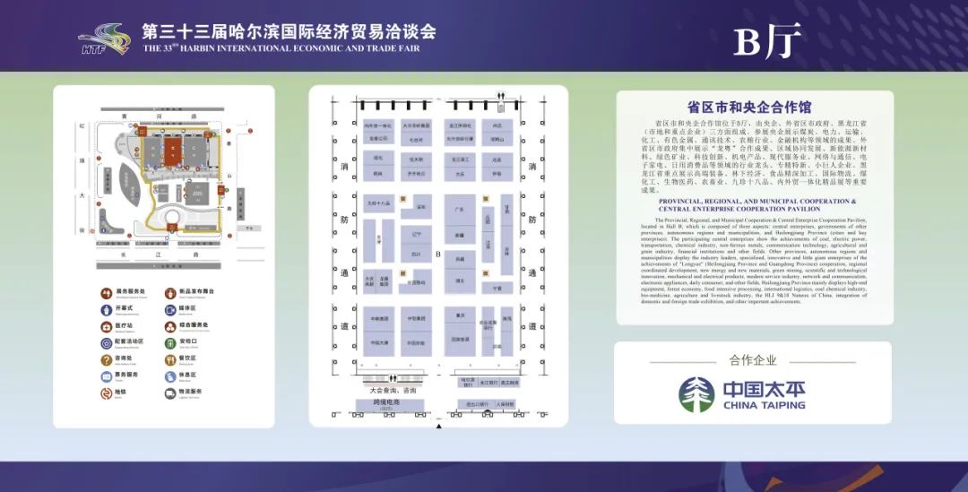 本届博览会以“合作 互信 机遇”为主题,主会场共设俄罗斯、国际及港澳台、省区市和央企合作、龙江振兴、高端装备和机械制造及配套服务(室外)五个展区。