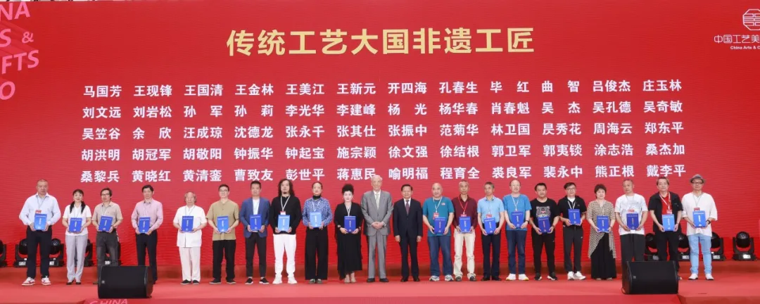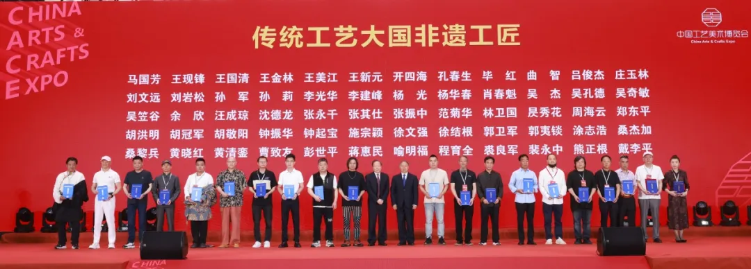 为推动工艺美术开启传承创新的新篇章,闭幕式上,为60名入选“首届传统工艺大国非遗工匠推荐学习活动”的非遗工匠们颁发证书。