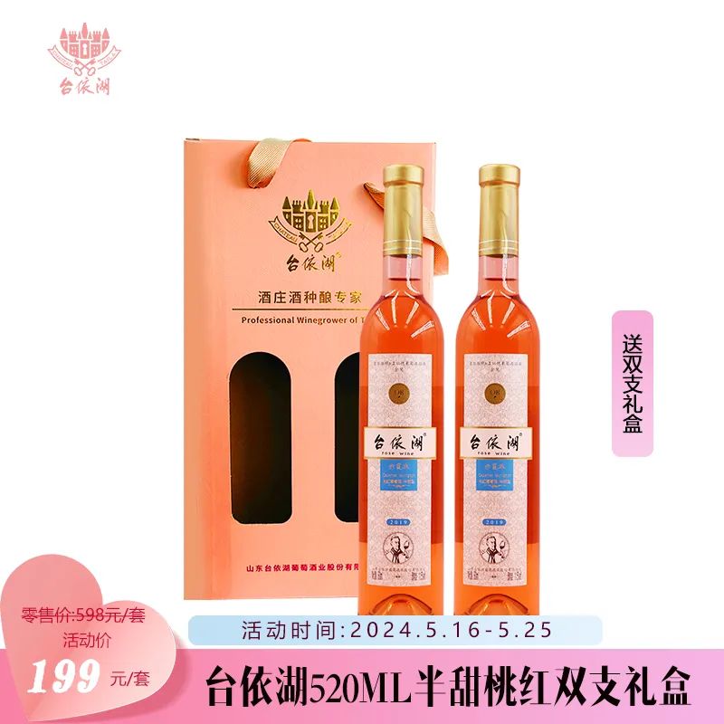 台依湖520ml半甜桃红酒庄酒双支礼盒装: