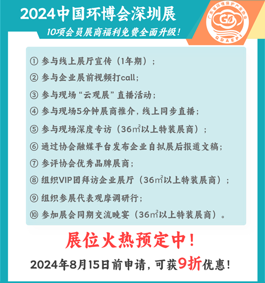十年相守,感恩同行!为回馈会员,广东省环境保护产业协会将为会员展商免费提供“10项”参展福利,具体如下: