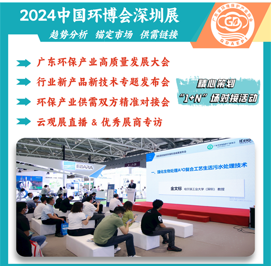 2024年中国环博会深圳展预计展出规模40000㎡,汇聚500+家优质展商,集中展示水与污水、给水与排水系统(泵管阀)、固废与土壤、大气治理、监测、综合环境治理等多个细分领域创新的技术与设备,同期围绕技术创新和当下热点举办“广东环保产业高质量发展大会”等20+场专业论坛及对接活动。