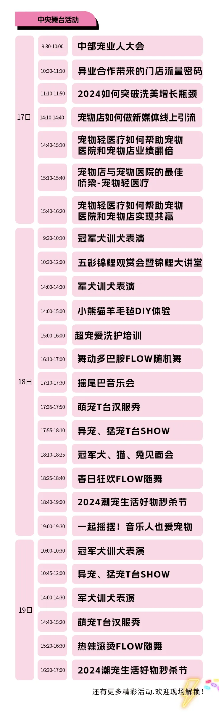 品牌云集,展品类别更丰富!汇聚800+展商,3000+潮流品牌,展期三天海量新品爆品!一手尝鲜价!推出超值尖货爆品,限时秒杀,晒单抽大奖等优惠活动,还为宠友准备了超多羊毛可薅,快来给毛孩子统统领到手!