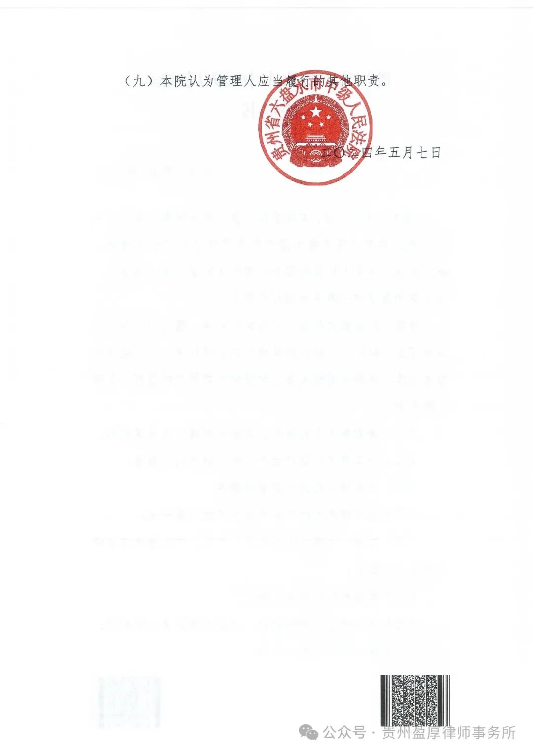 管理人办公地址:贵州省六盘水市高新区(红桥新区)凉都大道102号科创大厦20楼 贵州盈厚律师事务所