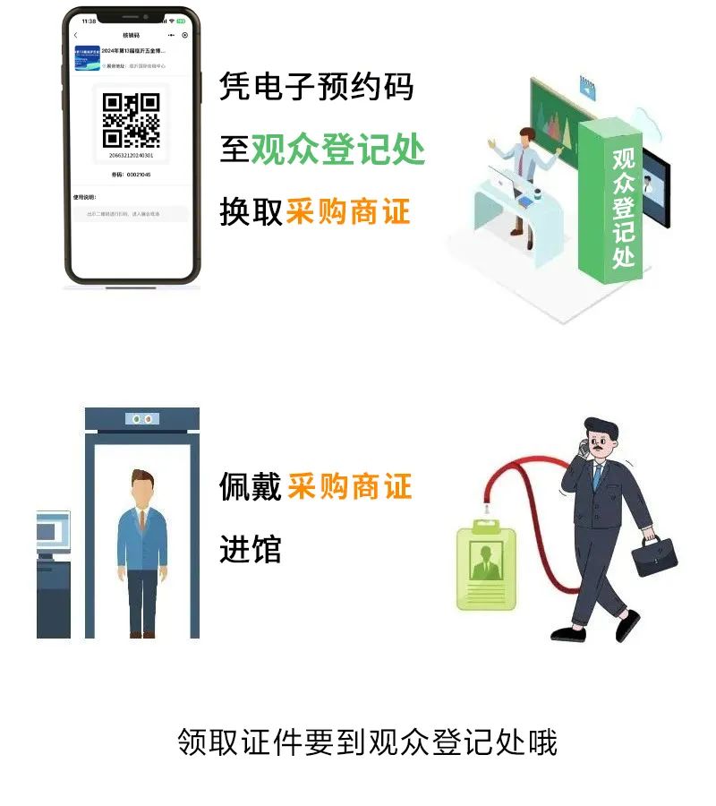 未进行预登记的观众,5月15-17日期间到达展馆者,前往观众登记处按“登记流程”进行登记并换取采购商证,进馆参观。
