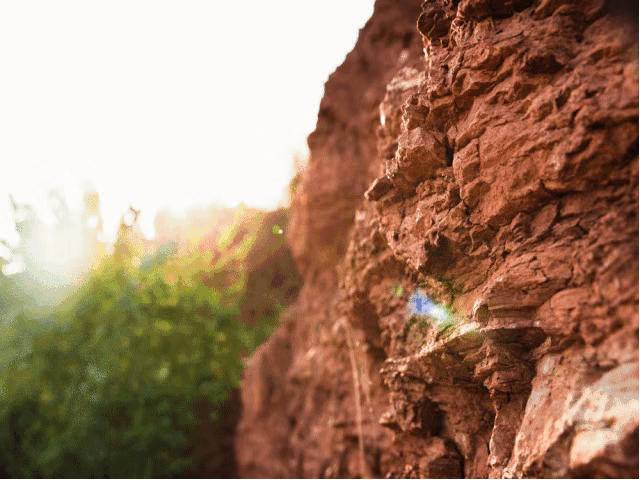 陡坡的土壤是经过了25亿年的地质变化积攒下来的红土。