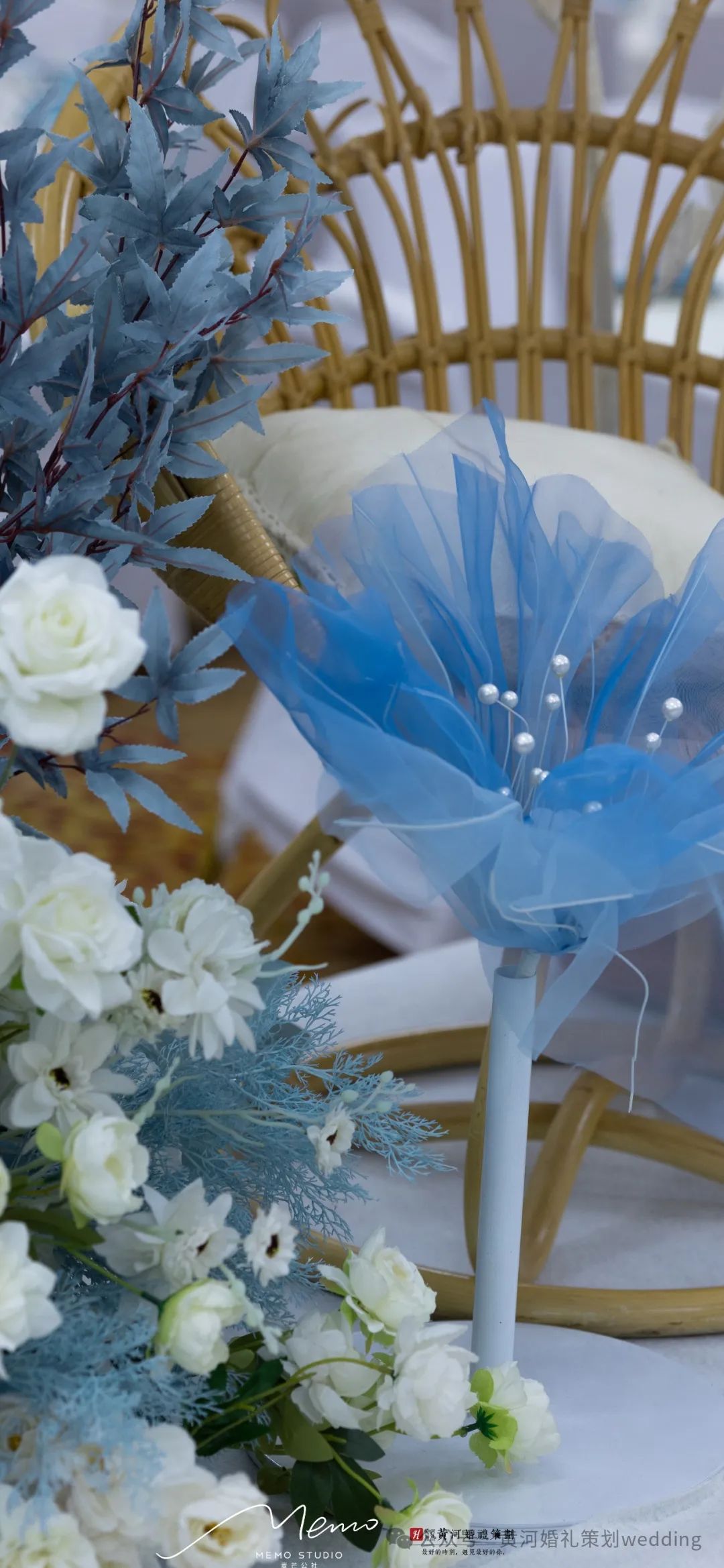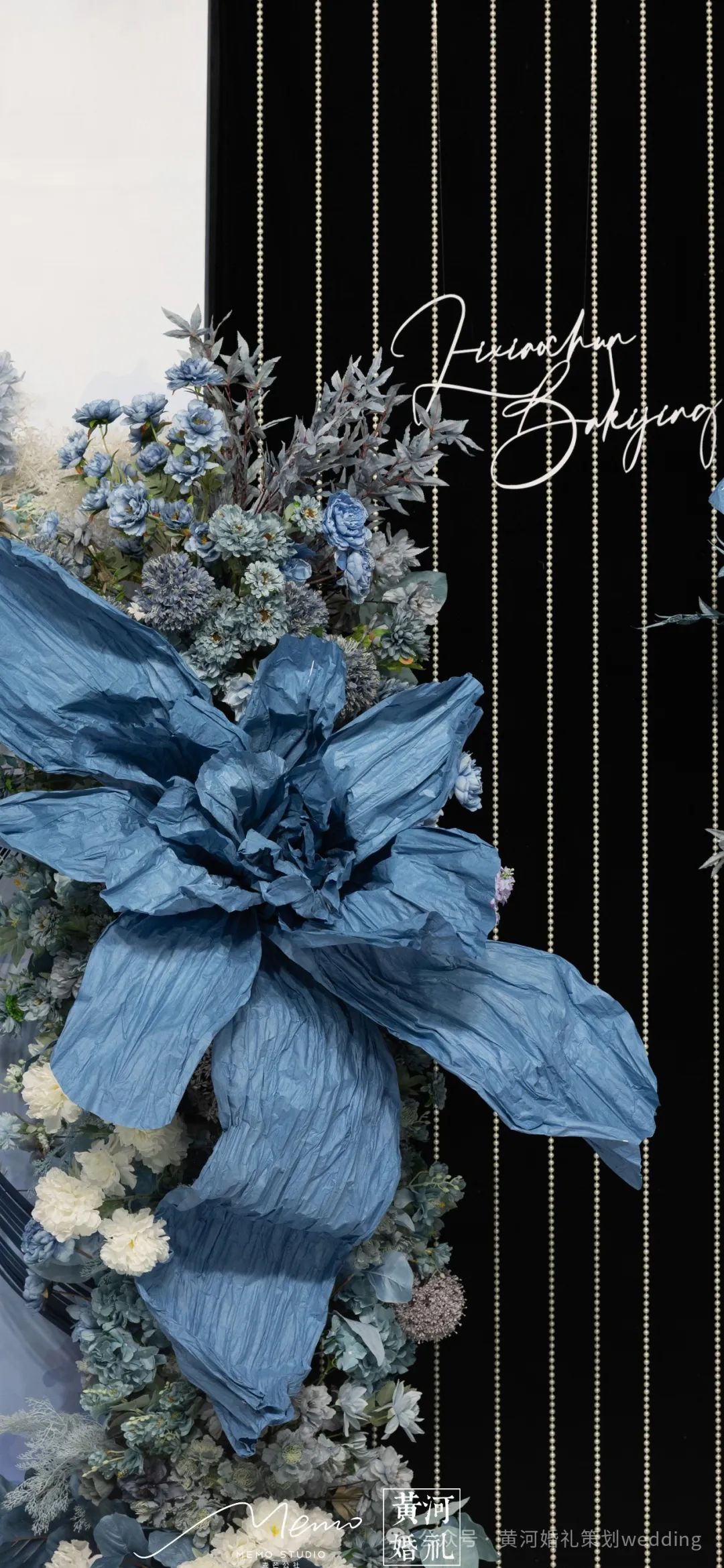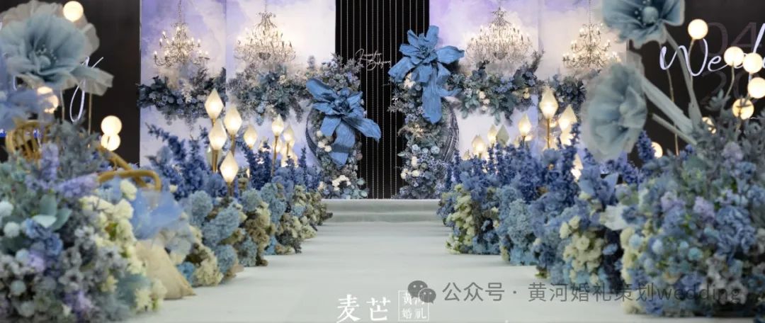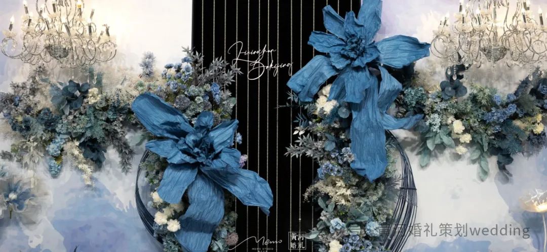 本场婚礼的主色调选用的正是其中一种蓝色——“静谧蓝”,熏染于深海之中,尽显蓝色调的素净与清爽。