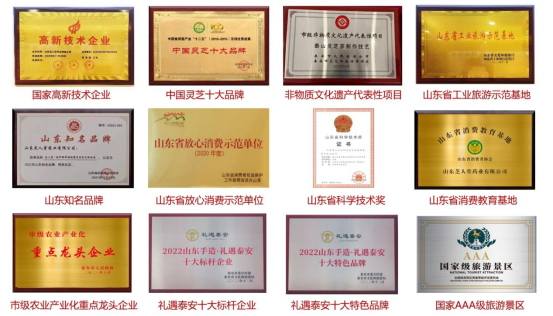 芝人堂或旗下产品先后获得国家高新技术企业、国家AAA级旅游景区、中国灵芝十大品牌、山东省科学技术奖、山东省工业旅游示范基地、山东知名品牌、泰安市科技进步一等奖、泰安市农业产业化重点龙头企业、泰安市科普教育基地、泰安市青少年科普教育示范基地、礼遇泰安十大标杆企业、礼遇泰安十大特色品牌等一系列荣誉奖项。