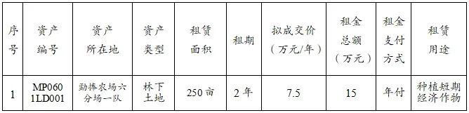 勐腊县农垦集团有限责任公司资产租赁招租事宜已在集团公司和资产所属公司的微信公众号、官方网站等平台公开发布招租公告,现将招租的承租意向结果公示如下: