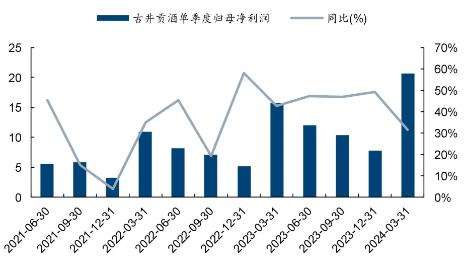 这一方面说明公司品牌溢价能力大大提升;一方面也说明产品需求端的旺盛局面,大大增强了接下来业绩增长的确定性。所以,从这个角度看,古井贡酒有望是接下来白酒成长潜力最大的公司。古井贡酒作为徽酒龙头,二线区域龙头的代表,拥有“古井贡酒”和“黄鹤楼”双中华名酒品牌,是白酒中唯二的存在。2022年古井贡在安徽区域市占率高达30%,成为绝对的第一龙头,远超省内的迎驾贡酒、口子窖以及金种子酒。同时这种强势省内份额,也远强于苏酒的今世缘以及酒鬼酒等。公司产品线非常丰富,早在2008年推出年份原浆,并且在2018年开始聚焦次高端“古20”,一举抢占了省内大部分500-600元价格带市场份额,让营收和利润实现了加速,2023年成为唯一的双百亿的区域性白酒品牌。省内的绝对份额,加上产品价格线满足消费升级的卡位,让古井贡酒走出了成长属性。 数据显示,2023年公司年份原浆酒营收高达154亿元,同比大增27%,营收占比高达近80%。中高端产品不论是增速还是占比要远远强于其它产品。省内发力的同时,省外同样开花,2023年华北、华南营收增速分别为40%和30%。同时,中高端产品营收占比的提升,从公司的吨价上也能看出来,从2017年以来增长非常明显。所以,古井贡酒目前正迎来极强的量价齐升逻辑,这也是公司合同负债激增的一个重要体现。古井贡酒整体的盈利能力还是非常强悍的,2008年公司营收才13亿,到2023年营收突破200亿,年复合增速近20%;净利润更是从0.4亿飙升到了45.9亿,年复合增速近40%。并且净利润增速要远远大于营收增速,可见公司极强的成本控制能力。2024年一季度,公司实现净利润20.66亿元,同比大增31.61%,继续保持稳健高成长,并且也创了单季度最好业绩。更为关键的是,公司核心盈利能力方面,在毛利率提升不明显的情况下,净利率提升却非常快,从2021年的17.89%攀升到了2024年一季度的25.65%,盈利能力还在大大增强。并给前面也提到过,公司也是近10年ROE大于15%的6家公司之一。当然,在毛利率稳定下,净利率的提升,主要得益于其强悍的费用管控能力,在白酒行业需求端低迷下,白酒龙头都在扩张销售费用稳营收的前提下,古井贡还能有效控制费用,可见其品牌溢价的强悍。从近5年的估值数据看,古井贡酒PE目前处于区间低位,同时公司巨额合同负债的加持,增强了业绩高增长的确定性,PEG远小于1。所以,站在白酒行业成熟和需求端偏弱的角度,目前从合同负债的角度更具备衡量业绩增长的确定性,这一块古井贡酒优势最突出。并且公司凭借着核心龙头优势和产品优势,具片仔癀、东阿阿胶等量价齐升的逻辑,有望成为白酒成长的标杆。给大家推荐个很牛X的短线玩家财哥,深度了解主力动向,精准把控市场节奏,手把手教你如何抓龙头!