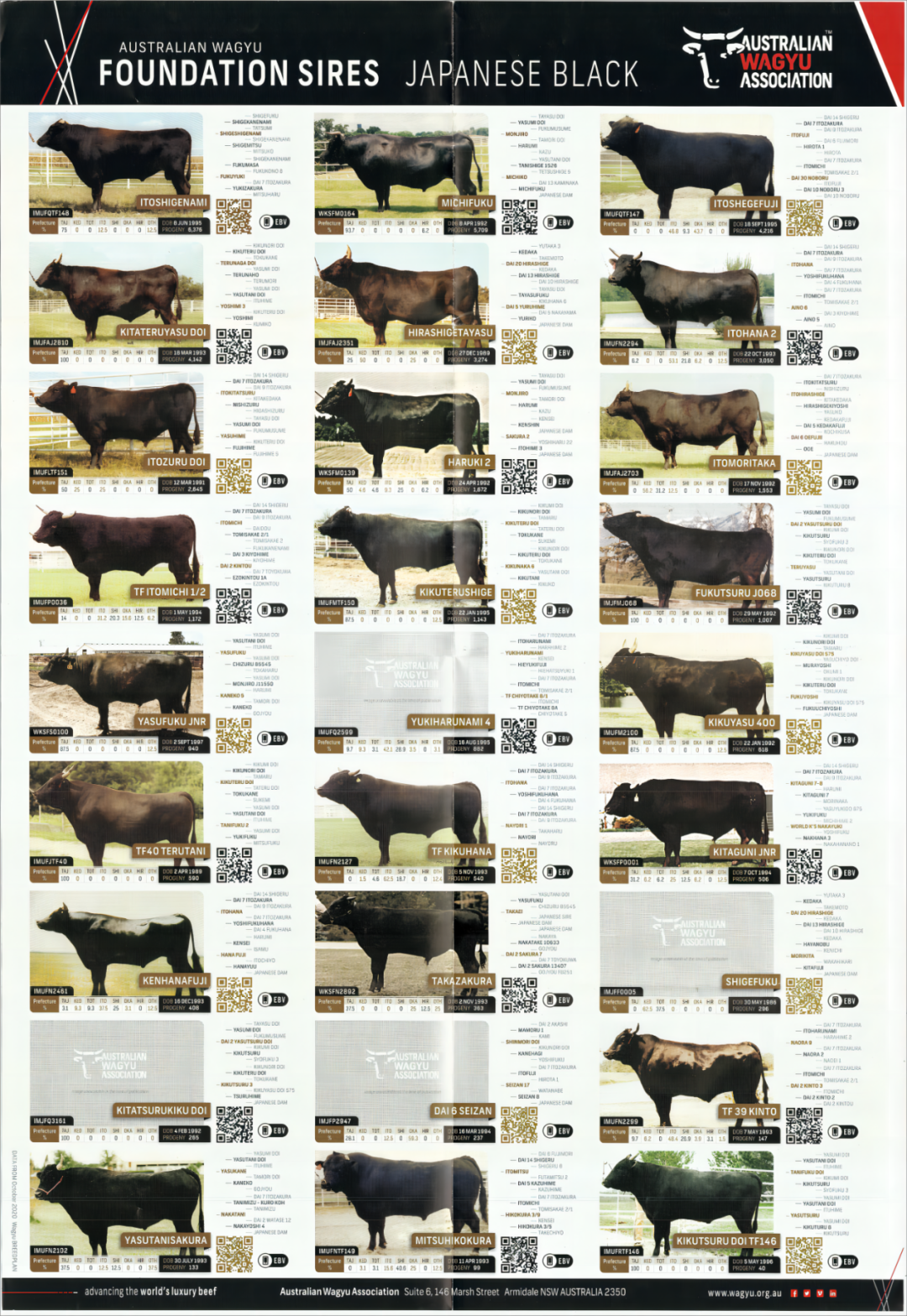 澳大利亚和牛协会(AWA)排名靠前的部分和牛系谱图