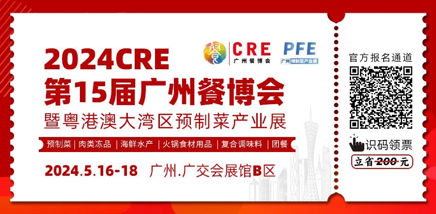 领取CRE·2024第15届广州餐博会暨大湾区预制菜产业展免费参观入场门票