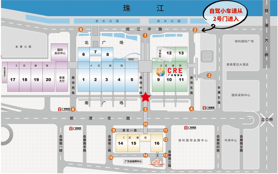 2.广州地铁:乘坐地铁8号线至琶洲站A出口出站,从4号门进入展馆,琶洲站B出口出站,从5号门进入展馆。