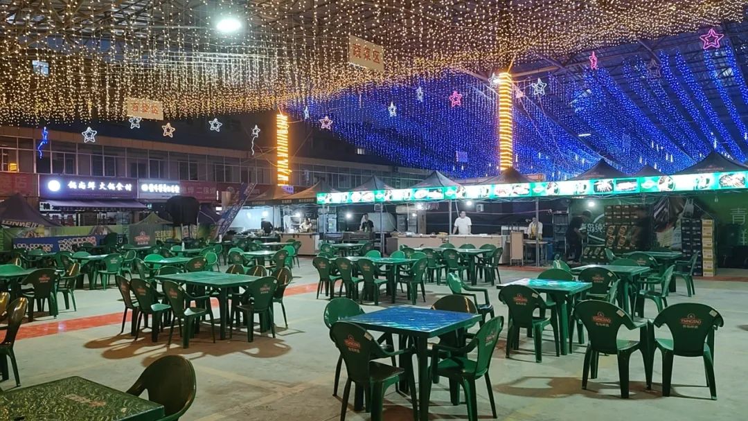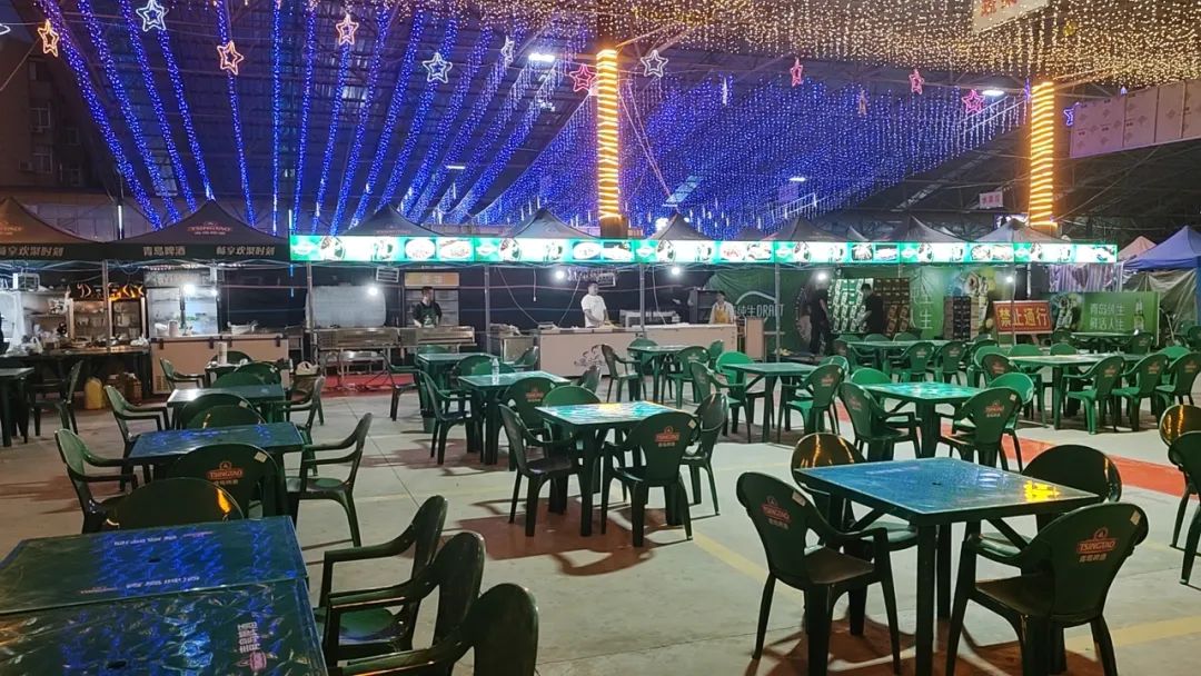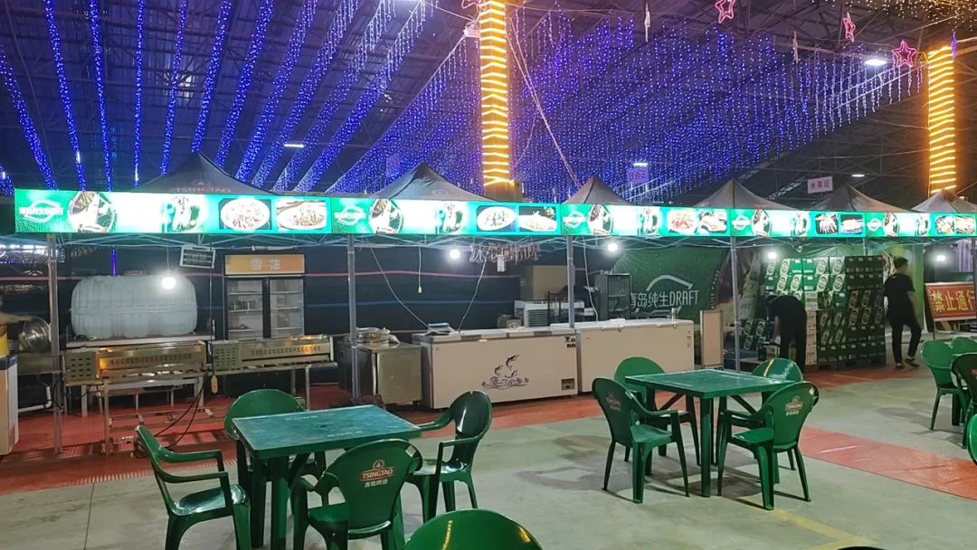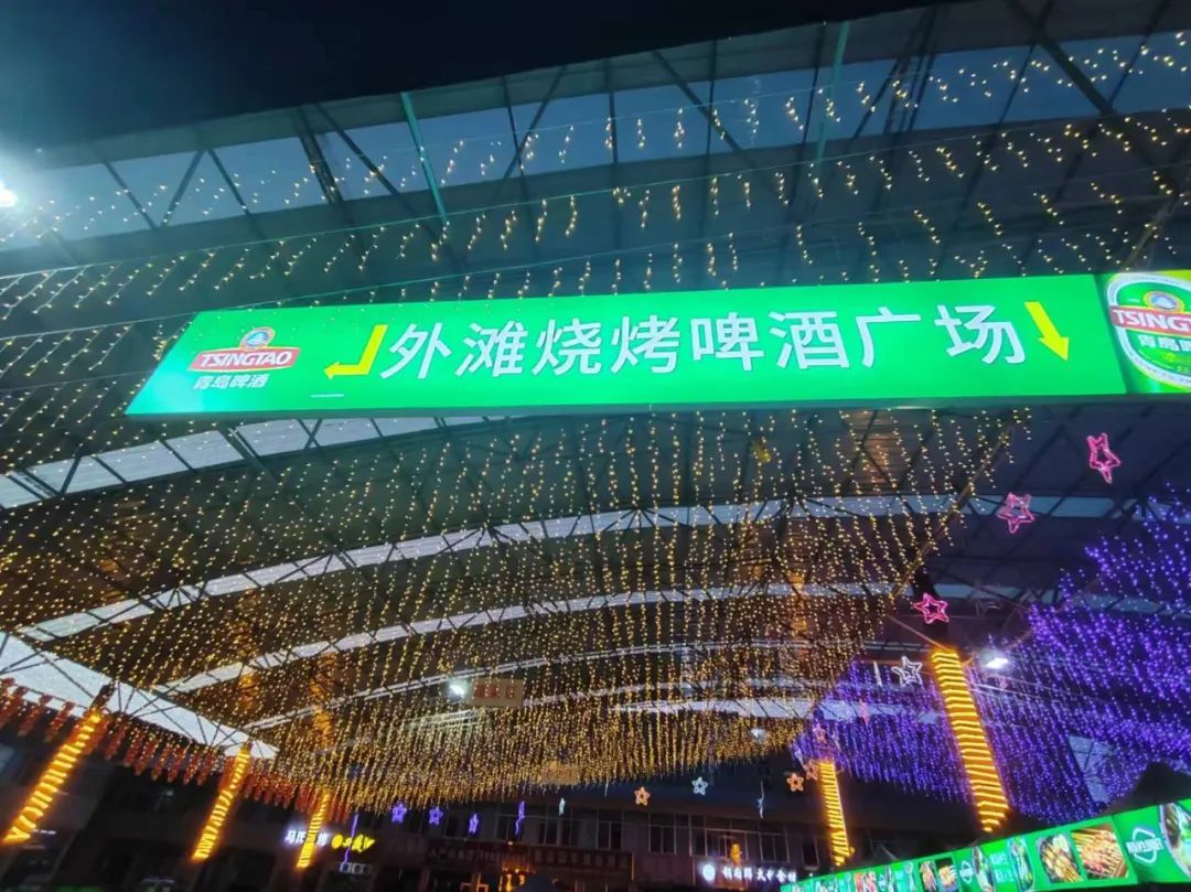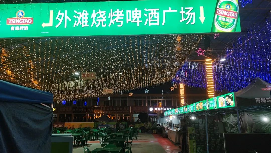 人人手把扎啤杯,就着海鲜、烤肉