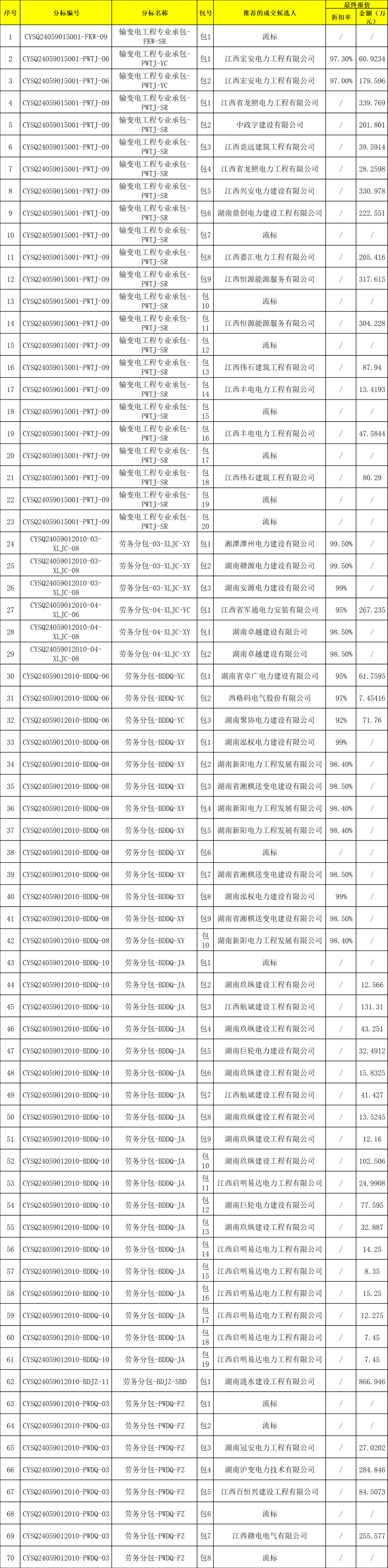 江西省电力有限公司2024年第三次省管产业联合授权服务类竞争性谈判采购(采购编号:CYSQ2405)评审工作已经结束。依据《中华人民共和国招标投标法实施条例》、《招标公告和公示信息发布管理办法》对成交候选人公示的规定,现将评审委员会推荐的成交候选人予以公示,公示期3日。应答人或者其他利害关系人若对评审结果有异议的,请在成交候选人公示期间以书面形式(邮件)提出。