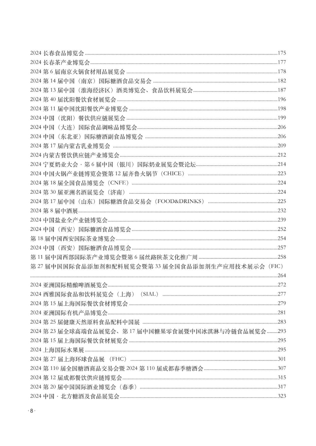 除了提供展览会的基本信息,本书还包含了一系列特定行业的博览会和交易会信息,如食品饮料、纺织服饰、医疗及制药设备、汽车、建筑建材等。这些展览会不仅为企业提供展示产品和技术的平台,也是行业交流和合作的重要场所。