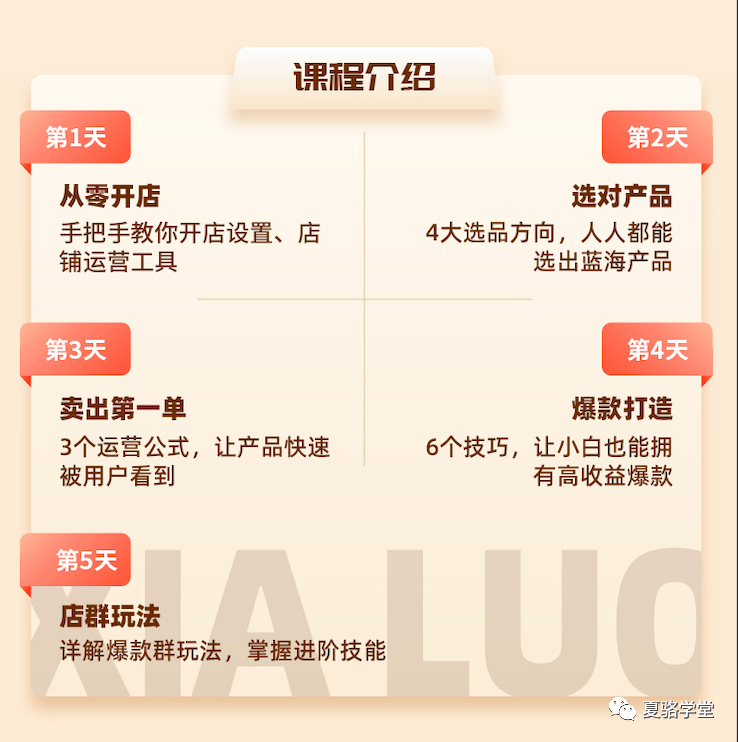 所以,我把这套深耕5年总结出來的方法,做成了这5天体验营,希望更多像我一样的普通人,能少踩坑、少吃亏,抓住淘寶无货源的红利。