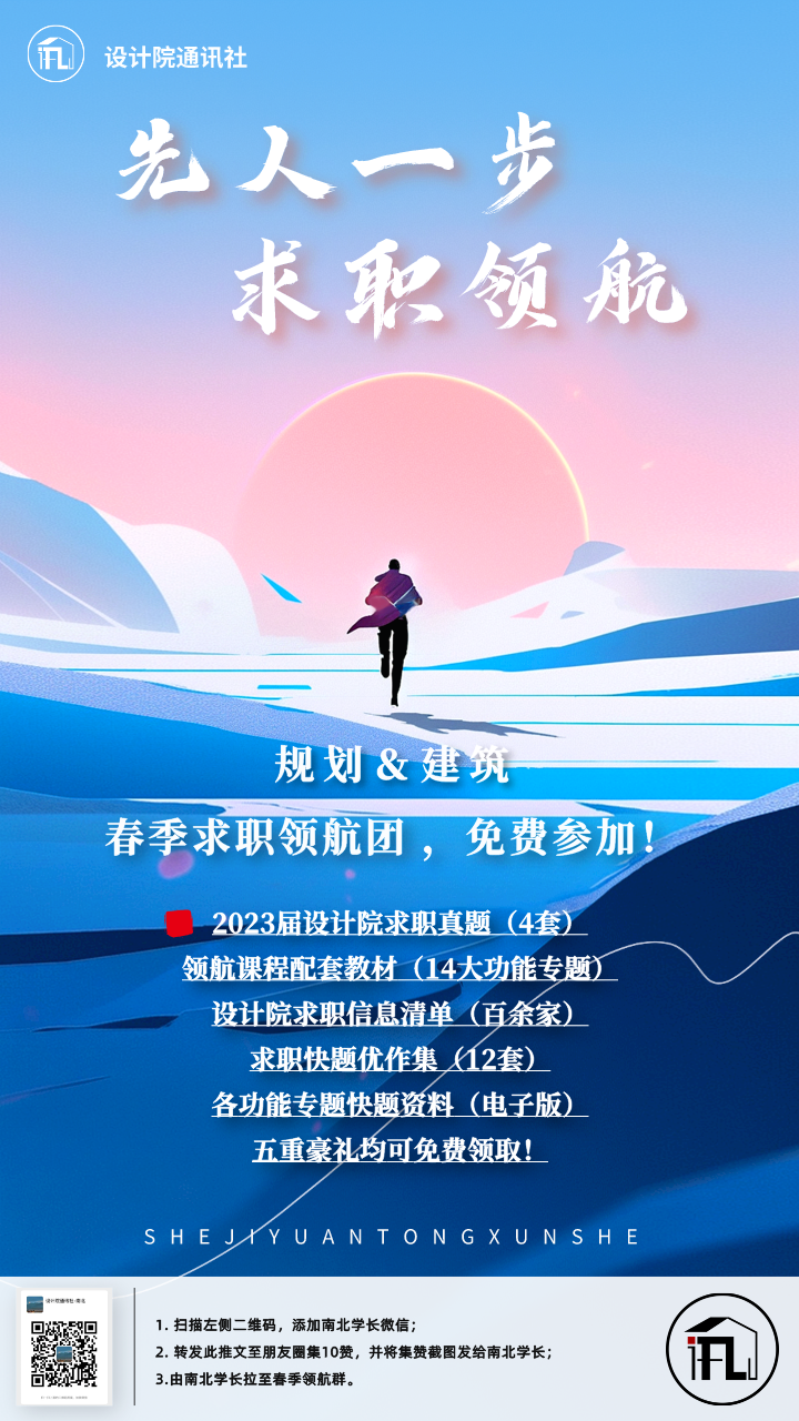 为帮助大家更好地准备2025届设计院秋招,通讯社2024年度【规划/建筑】春季领航团正式上线啦!春季领航团为全程免费课程,旨在通过求职快题各功能专题的抄绘练习及讲师点评,帮助大家更好地准备秋招考试!