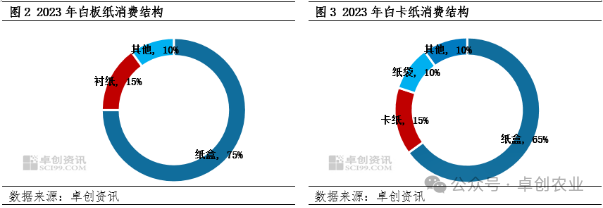 从图1中可见,白酒行业的纸包装主要是彩盒和纸箱,其中彩盒在整个包装材料占比中能达到25%以上。而彩盒的主要纸品是白板纸、白卡纸。根据卓创资讯调研数据显示,白板纸、白卡纸消费结构中有65%-75%是用于纸盒包装。