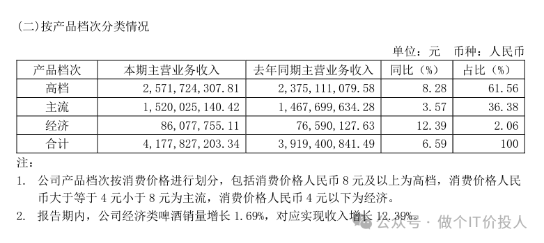 6、 从三个档次的啤酒来看,经济和高档两个档次的啤酒同比相对较好,这个也在一定程度反映了社会中的“K型”经济。