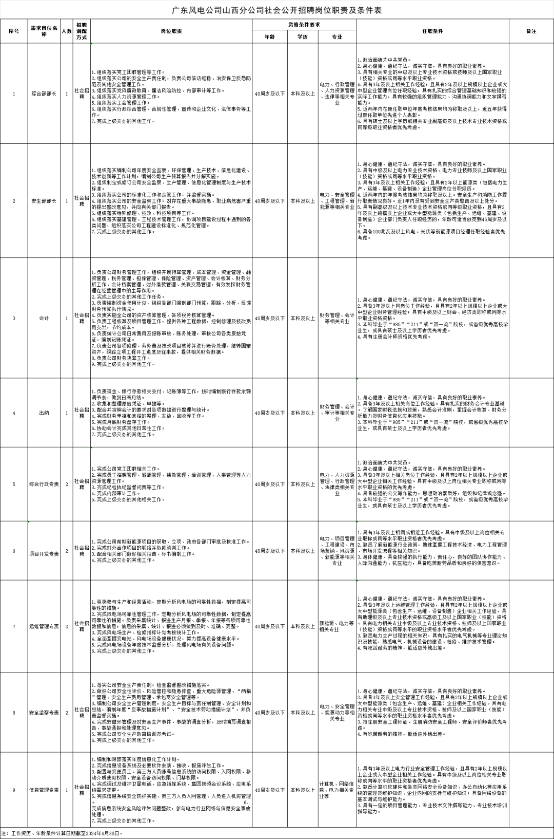 (四)符合聘用岗位的其他条件,详见《广东风电公司山西分公司社会公开招聘岗位职责及条件表》(附件1)。