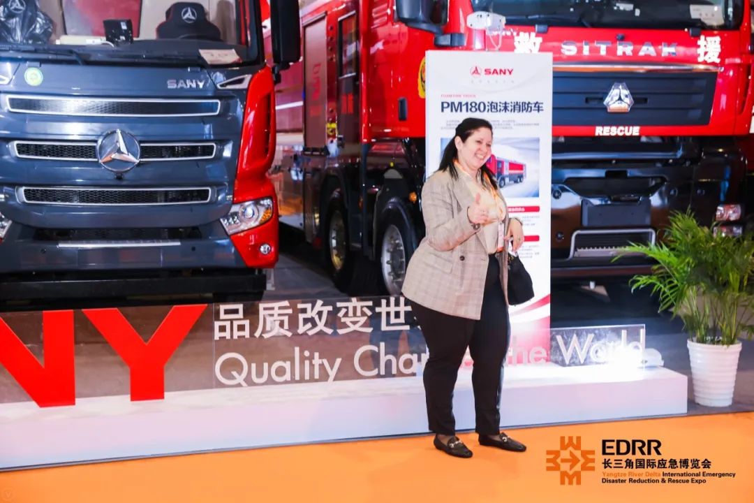 作为中国最大的工程机械制造商之一,三一重工带来了65米大跨度举高喷射消防车、核生化侦检消防车、模块化前突器材车、森林防火通道开设车及PM180泡沫消防车等5款特种车辆首次亮相长三角国际应急博览会。