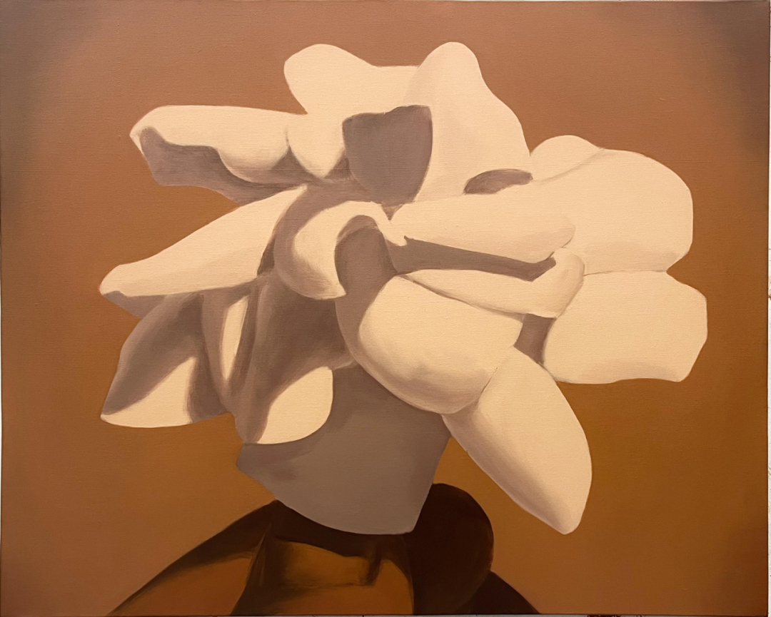 “栀子花”延续了他转向现实之后一贯的风格和思考。栀子花是南方常见的、普通的一种花,花的形状简洁,花色也不艳丽,种在小区的角落,通过他的描绘而获得了一种神秘的感觉和魔力,让你不得不注视。